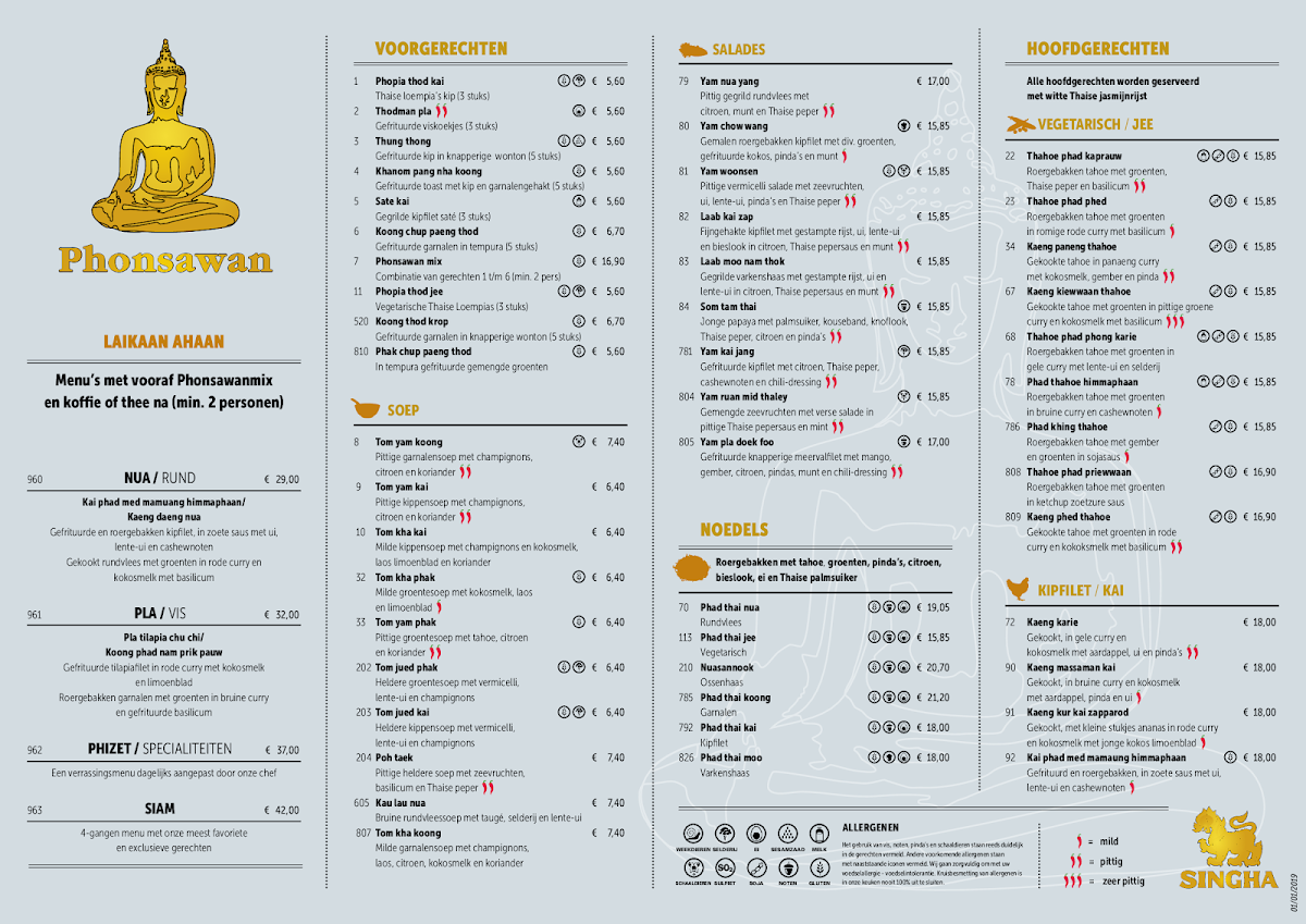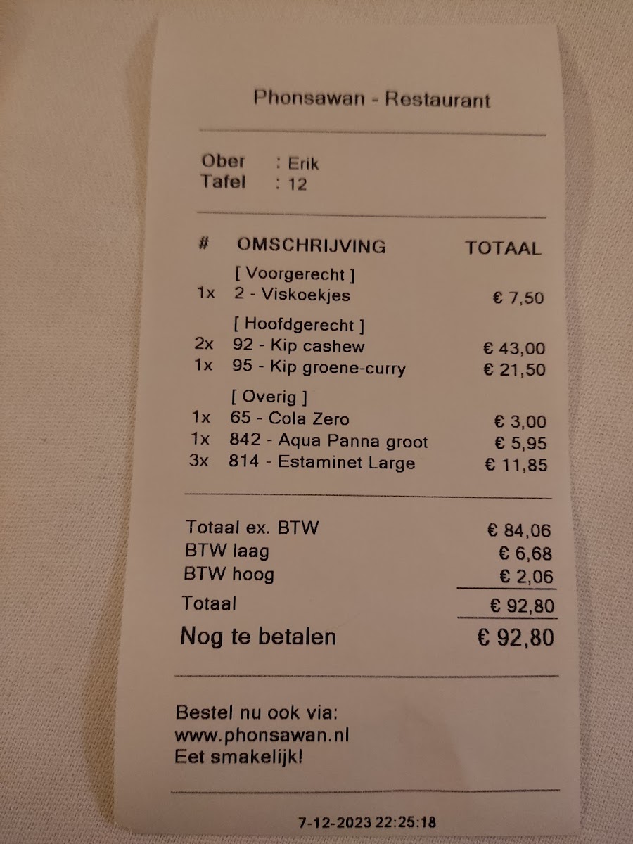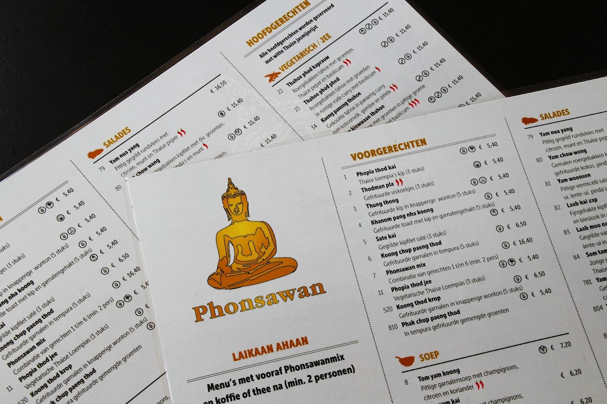 Phonsawan Restaurant offers a delightful and diverse menu that captures the essence of Thai cuisine. Among the standout dishes, the Mix Voorgerecht stands out as a must-try appetizer, offering a tempting combination of flavors to kickstart the meal. For those craving something hearty, the selection of curry dishes is sure to satisfy. The restaurant serves a rich and flavorful Massaman Curry, which is a perfect balance of sweetness and spice. The Pad Thai is another crowd favorite, expertly prepared with stir-fried noodles, peanuts, and a tangy tamarind sauce that brings all the elements together. The menu also features several other traditional dishes, like the Gaeng Kiew Wan (Green Curry), which promises a deliciously spicy kick, and the Satay skewers, which are grilled to perfection. Vegetarians will appreciate the variety of options, including the fragrant and filling Vegetable Stir-Fry. The balance of flavors in these dishes reflects Phonsawan’s commitment to authentic Thai cooking, making it a fantastic choice for anyone looking to experience the true taste of Thailand.